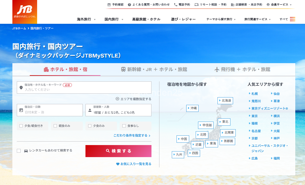 【自由自在!交通+宿泊のセット予約】